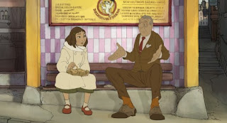 Chomet mixes three dimensional and hand - drawn animation to tell a heart warming story, they have no real dialogue so relies on body movements and exaggeration. "Chomet's wonderful artwork and lively characters and worlds make for an incredible viewing experience. It's not easy to create a film with no dialogue-not to mention an animated film... His characters' actions speak louder than words ever could..." (WordPress, 2011) Chomet's film return to the familiar technique of a silent movie but the performance is not forced, it is left to play out between the interaction of the characters. The Illusionist shares the bond between the small girl and the old entertainer which could have been received out of context but Chomet has created a real bond and understanding of the characters. "The Illusionist amounts to a quiet act of defiance with its hand-drawn tale of an ageing, outmoded music-hall entertainer. The Illusionist is sweet and sad and shackled to the past." (Brooks, 2010) The evindence siginifies how the story's back log makes the Illusionist inviting but also sad when the viewer realises the truth with the ending scene and the photograph but Chomet's intention is not to disturb the audience but draw them into the world of rich colour and warm characters.