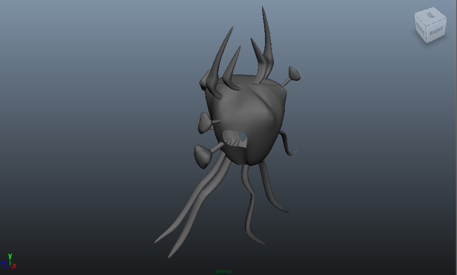The basic unsmoothed model took a lot of twicking so that the anatomy didn't appear too symmetrical but felt it was started to come together. I used my original concept as a guide of how I wanted the model to look.
